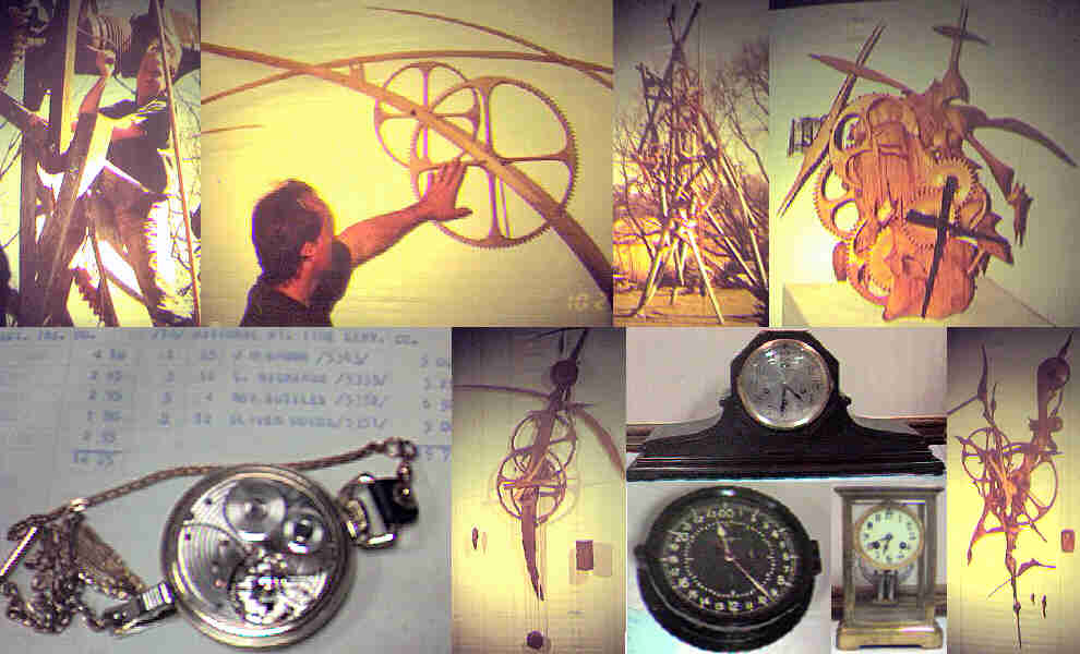 Whoever thinks that this hobby is only about old clocks missed a great example to the contrary at our April meeting. Ward Francillon presented a slide show about a contemporary Minnesota clockmaker, Jim Borden. Ward and Mary went to visit Jim at his shop several years ago, and took the wonderful pictures below. As you can tell, typical is NOT the word to use for his designs. The wooden movements range in size from desktop to many stories tall, all with a complexity and beauty that is unique.