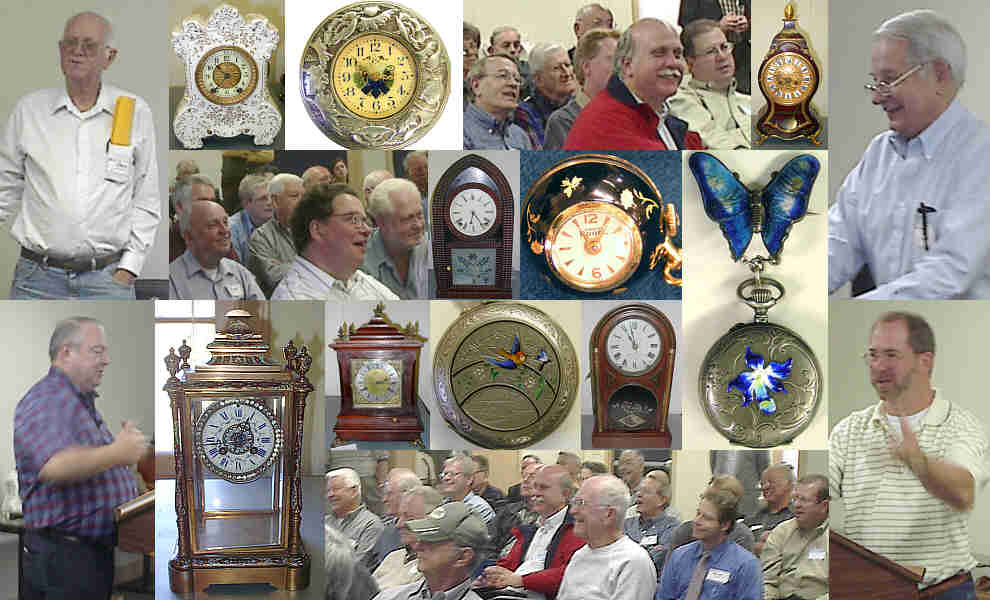 Our April program was about the "Great Find". You may think they don’t exist anymore but these stories dispute that theory. Al Grosskreutz told of a broken down mess that a dealer in Texas had found in a barn. It turned out to be a Seth Thomas #2. The top glass was broken, the bottom was intact, but termites had done a job on the sides of the case. Fortunately Timesavers sells case parts and Al set out to restore this beauty. He brought in the case to show off it’s beautiful new condition - just waiting to be reunited with the movement and dial.