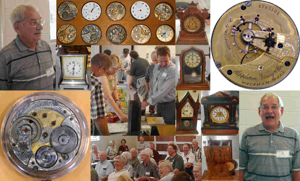 The topic of the Watch Focus Group was Waltham's model 1883 movements. A large number appeared for display including a number of gilt damaskeened Appleton, Tracy & Co. grade and frosted grade No. 35 movements. Pictures were displayed of such well-known private labeled examples as the "Santa Fe" route watches that Henry Montgomery had made for use on the Atchison, Topeka and Santa Fe Railway. There were reproductions of 1880s ads noting the factory descriptions of a number of model `83 grades. These were free for the taking (the ads, not the watches) and disappeared quickly.
