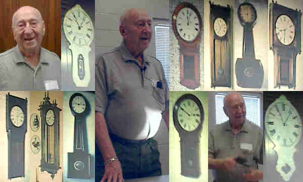 Edward Howard lost his father at age 13 and started working to support his family. His first job was fishing for mackerel. Then he worked with a man named Plimpton making iron plows. His third job was in eggs and butter, then again working with Plimpton on scales and balances. Howard then made a scale to weigh gold. Joe said his only flaw was that he wasn’t a great businessman, he was too strict. He was meticulous in everything he did. He apprenticed with the Willards for five years in clockmaking. His cases were perfect and movements were untouched by anyone. Joe remarked that he never repaired a Howard clock for wear. The journey through Howard history included slides of some of the wonderful pieces in Joe’s collection, including a #1 Banjo with a square bottom. It’s the only movement that wasn’t signed E. Howard.