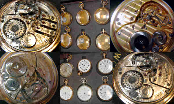 The Watch Focus Group looked at 16-size railroad watches having less than 21 jewels. A 17-jewel Rockford Winnebago showed up, as did an Illinois Bunn grade. Elgin was well represented by a grade 161, 17-jewel, 3-finger bridge movement and a B.W. Raymond grade 370, 3/4 plate watch (see picture). We'll take a careful look at 18-size Swiss watches at the December meeting. These will be higher grade watches, holding the "Swiss Fakes" for another time. We'll follow up in February with 16-size Swiss watches.