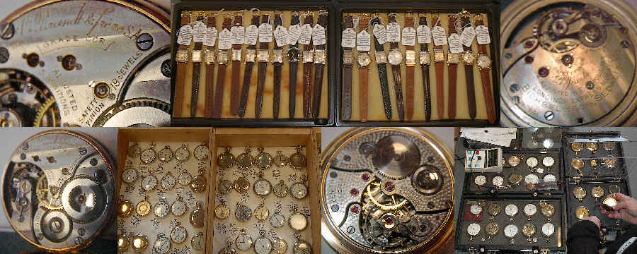 The Watch Focus Group displayed 18-size Swiss watches. The word went out to hold the "Swiss Fakes" for another time, resulting in a turnout of higher grade examples. Hans Rupf brought an earlier, adjusted, Longines watch bearing serial number 553,878. It was fitted with at least 16 jewels, probably 20, but the watch hadn't been taken down to count. It was one of the few we've seen of this high quality having a serial number below 1,000,000. A 23-jewel Zenith "Extra" grade watch, serial number 1,644,883, was shown by Kent Singer. 18-size (and 16-size) Zenith watches of this quality were almost always made specifically for North American railroad time service and are rarely seen. The topic for February will follow the theme with 16-size higher grade Swiss watches being displayed.