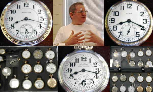 The Watch Focus Group displayed watches of the 1920s this time. The display case held examples of factory cased watches from most of the remaining American watches. The emphasis was on standard watches, those designed for use in railroad time service. Contemporary factory ads were posted, showing the examples that were on display. Kent Singer briefly talked about the watches. He also reminded us that at the August meeting the group would focus on tu-tone (gold-on-nickel) damaskeened Illinois movements and that members are encouraged to bring their examples to show. At the October meeting, the group will turn its attention to Swiss watches made for North American railroad service to coincide with the subject of that meeting's featured speaker, Ed Ueberall. Ed, one of the leading authorities on North American railroad time service, will be discussing the non-American watches used in the service. He will no doubt have many of his own rare examples to display.